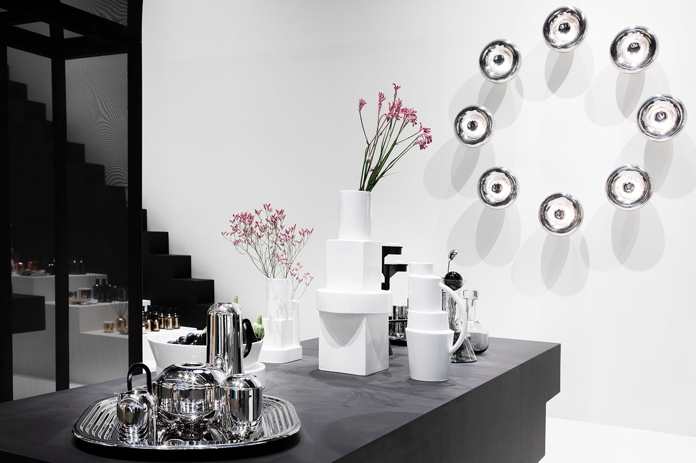 イギリスのアフタヌーンティーで使用される洗練されたサービングトレイ。一枚の厚い金属板に刻印しかたちづくられる段のついたデザインは、存在感のある一品です。