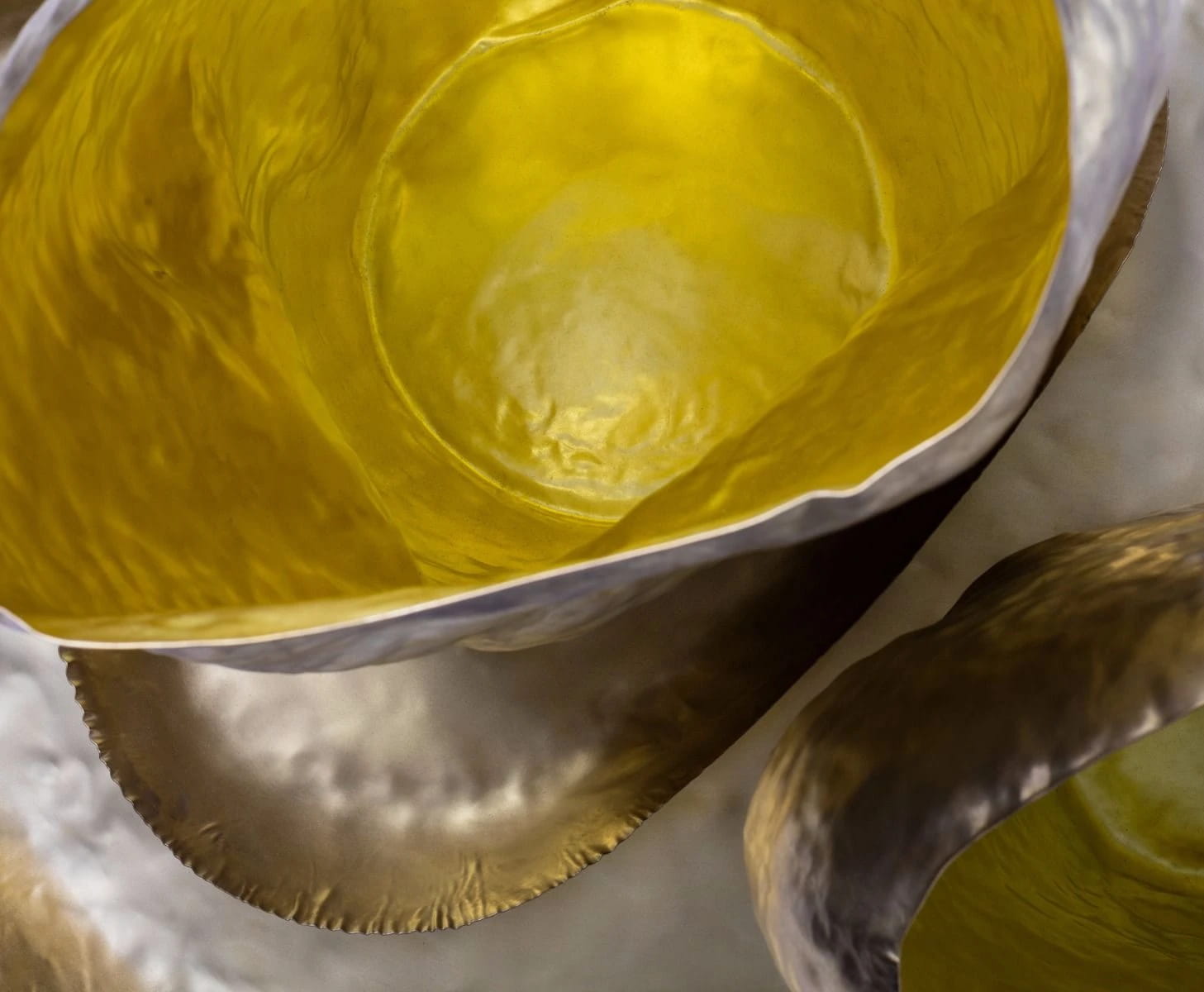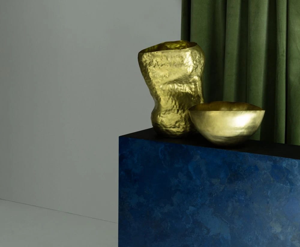 職人の手によって成形された不規則なフォルムが特徴的な「BASH (バッシュ)」は、その名前にあらわされるように、焼きなましされた真鍮の大きな板を何度も叩いて(バッシュされて)成型されます。本商品はハンドメイドのため、多少個体差がございます。