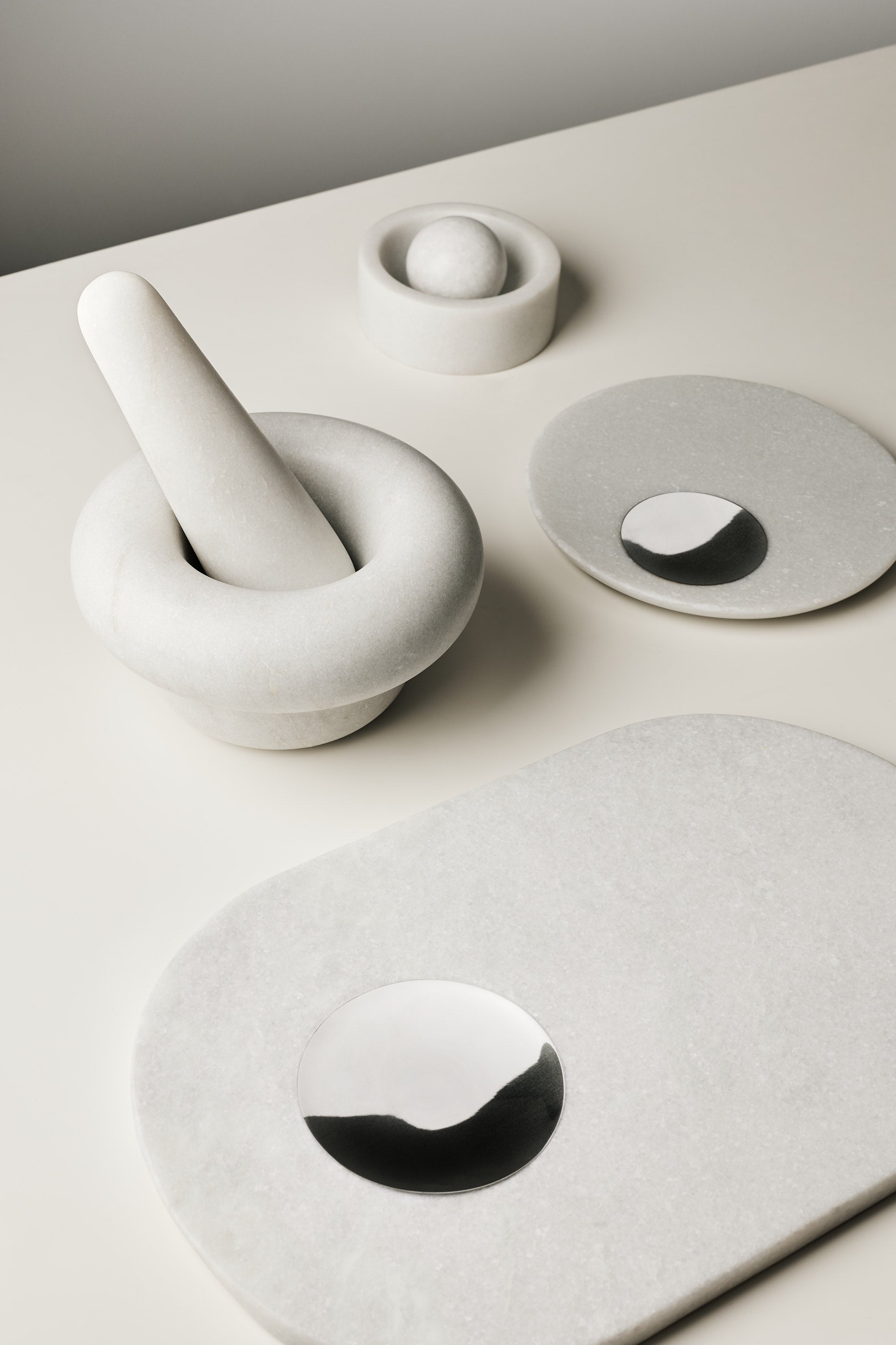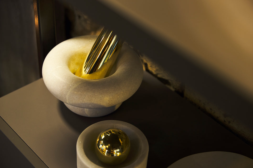 一見すると科学の実験用具のように見える大理石製のペストル&モルタル(乳棒と乳鉢)のセット。様々なスパイスやハーブのディップ、ソース作りにお使いいただけます。天然大理石を使用している為、模様の個体差や割れたような跡に見えるものもありますが、石が成形される過程でできたものですので、石という素材特有の歴史の痕跡としてご理解ください。