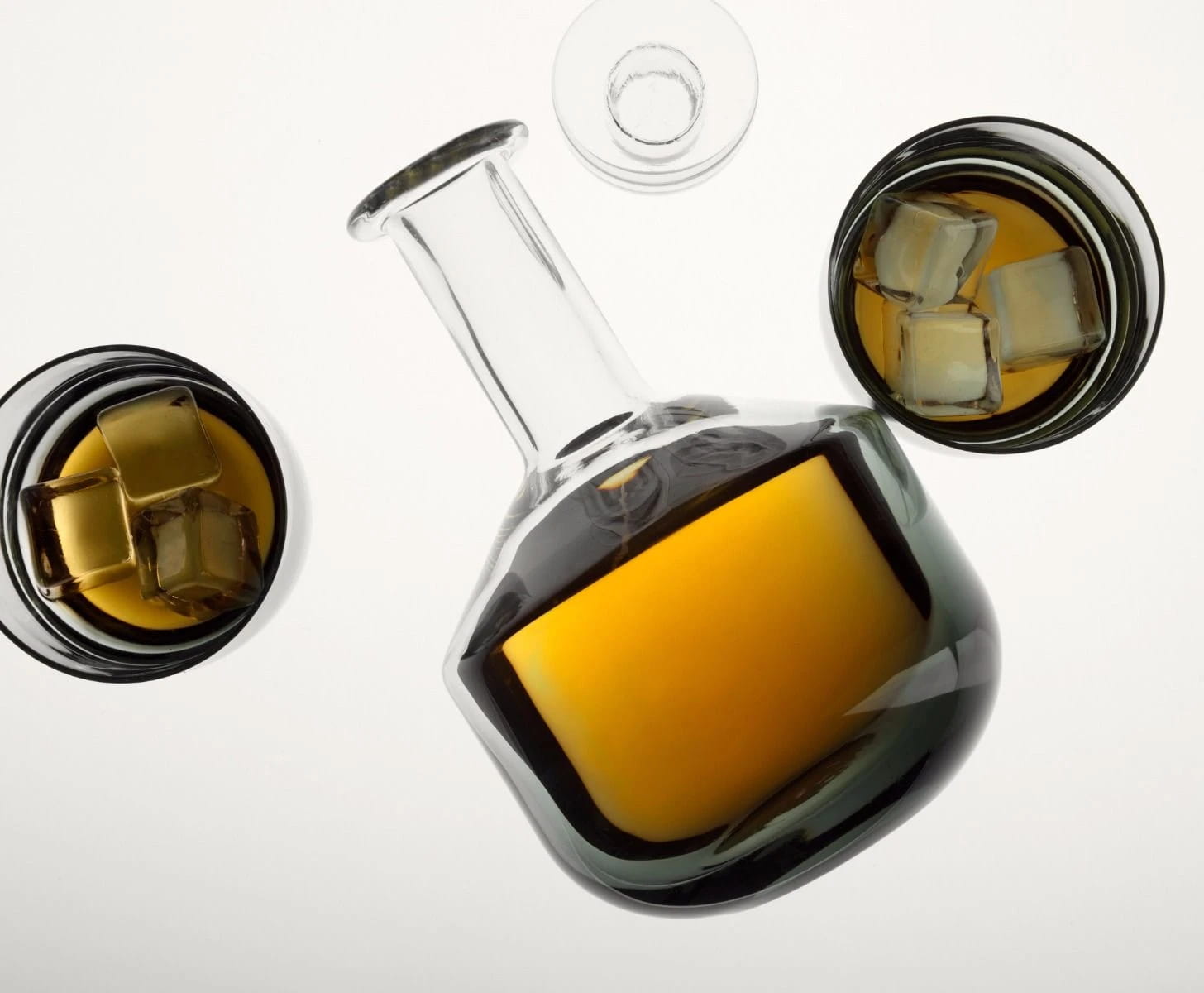 手作りのガラス・コレクション「TANK(タンク)」。製造時の温度、湿度や職人の癖によって、形や重さなどに個体差が発生しますが、それこそがハンドメイドの味わいですので、是非その「違い」をお楽しみください。ウィスキーの味わいを引き出すデキャンタはテーブルシーンを彩るアイテムとしても最適です。