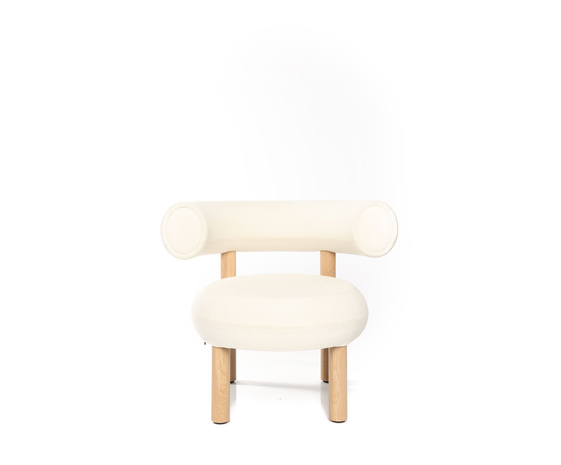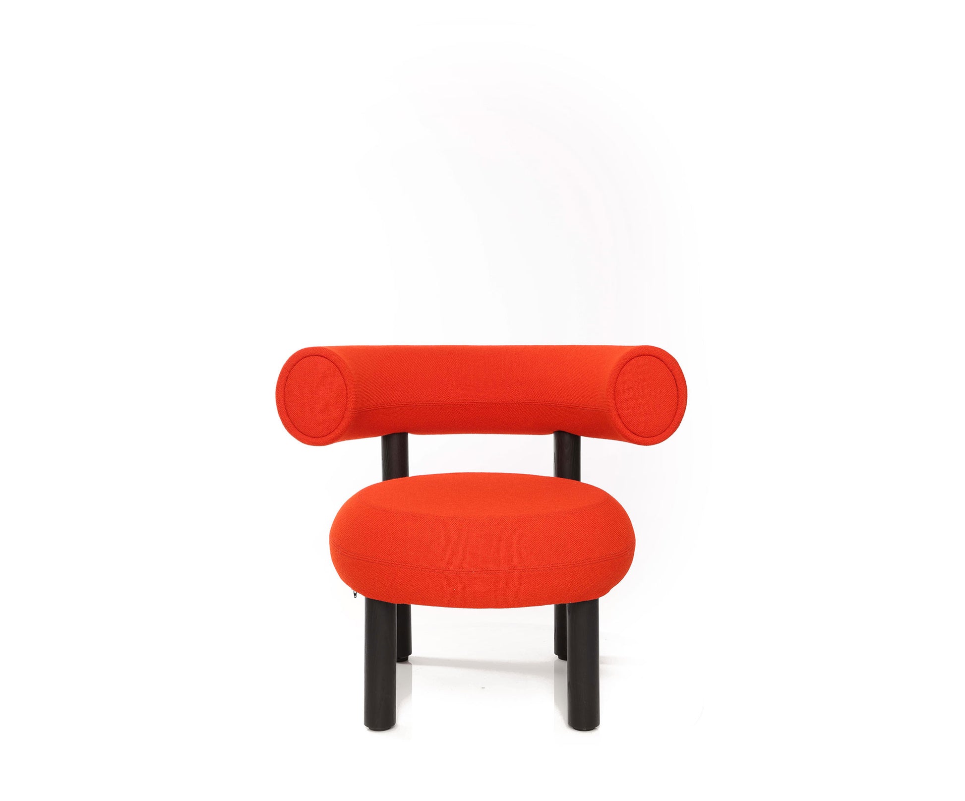 FAT LOUNGE CHAIR(ファット ラウンジ チェア)は、身体を包み込むシルエットと自由度の高い座り心地が魅力のラウンジチェア。ヨーロッパの熟練職人が手掛けた精緻な仕上げにより、エレガンスと遊び心が共存するアイコニックなデザインに仕上がっています。たっぷりとしたクッション、厚みのある上質な張地に加え、背もたれが円状に横へと広がる特徴的なカーブが包容感を生み出し、ほかにはない快適性を提供します。