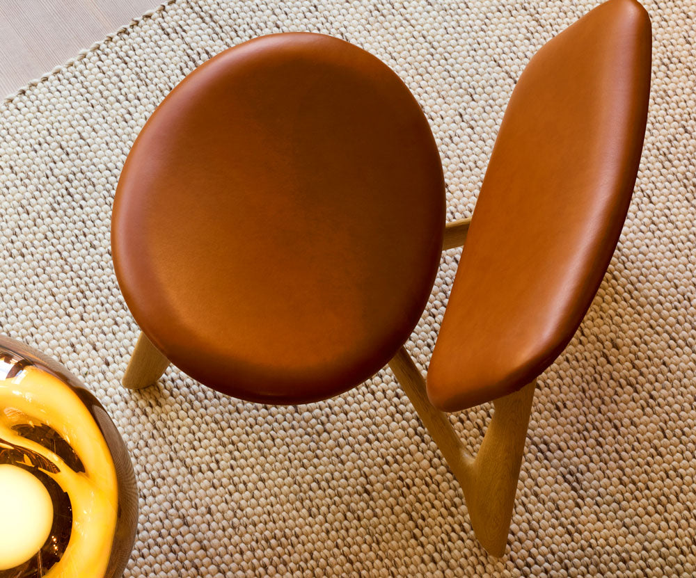 ゆったりとしたサイズ感と丸みのあるエッジ、さらに木目を際立たせる深いブラッシュド加工が特徴の SLAB LOUNGE CHAIR(スラブ ラウンジ チェア)。