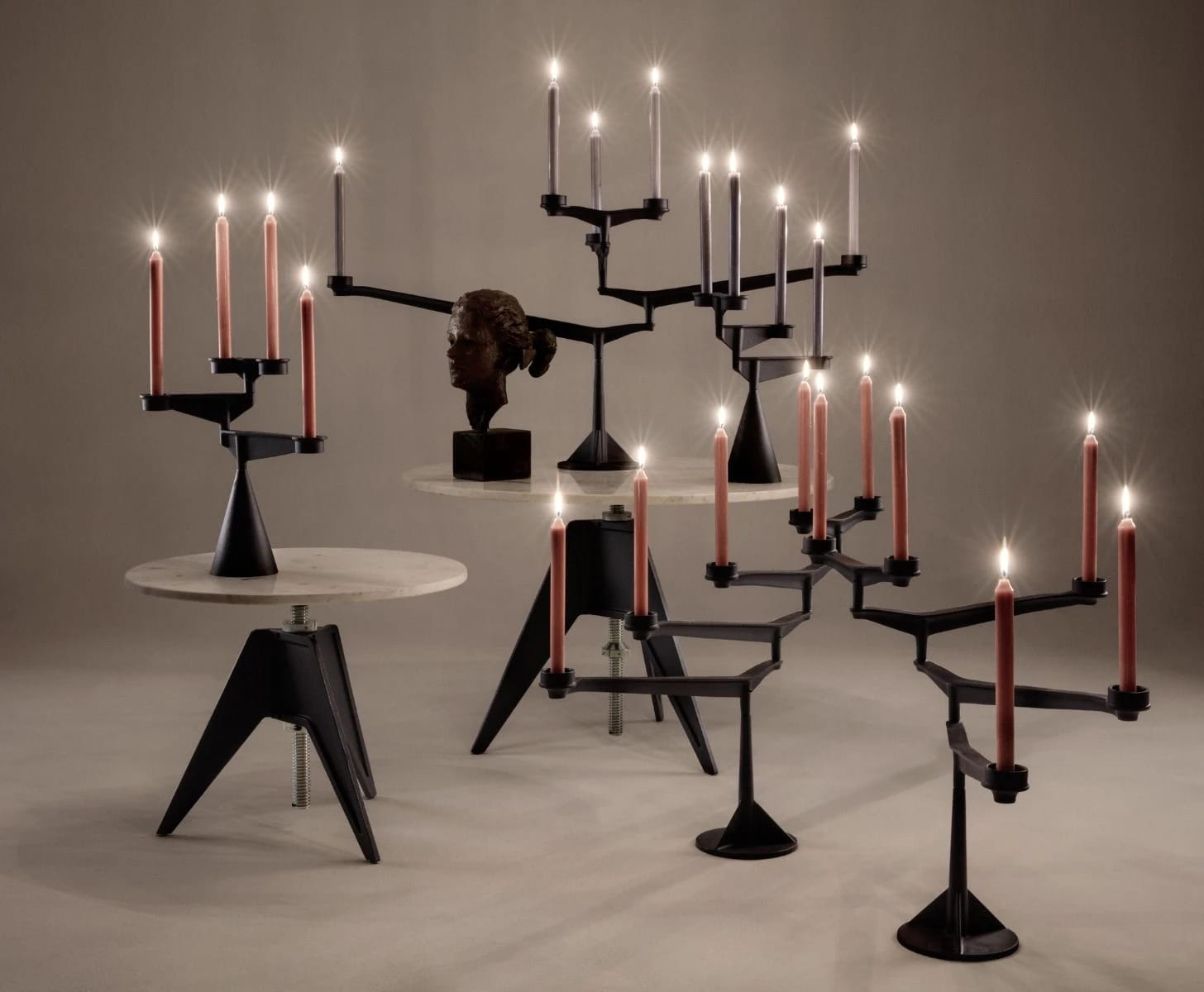 Screw Table / スクリューテーブルは機械の部品をつなぐネジのように、天板を回転させることで天板が上下し高さ変更が可能です。
