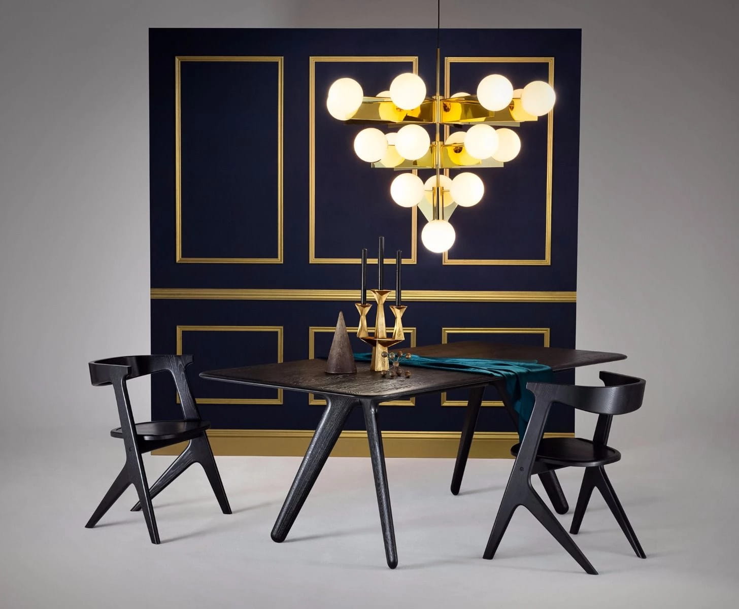 究極のミニマリズムを体現する航空機の機体や主翼に映し出される太陽の光や映し出される影のシルエットからインスピレーションを受けてデザインされた「PLANE(プレーン)」。真鍮メッキを施した金属製のフレームと二層構造になった白色ガラスで出来た球体から構成されてる照明のシルエットは幻想的な視覚効果を産み出します。一見クラシックなデザインのようにも見えますが、シンプル且つ大胆な幾何学的なシルエットが特徴です。