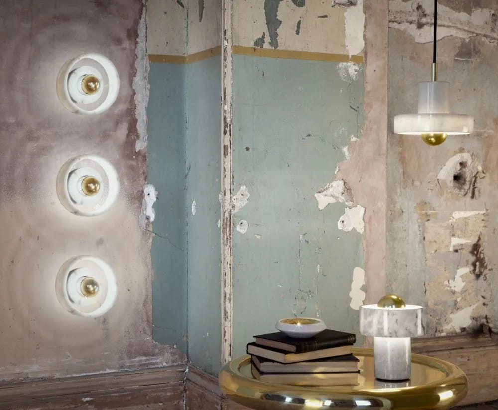 大理石の素材感をそのまま意匠、機能性に活かすことを念頭にデザインされた照明、それが「STONE(ストーン)」です。大理石の特性を活かし、石の持つ固いイメージとは対照的に、鉱物を通して滲み出てくる光が、素材に温かみを与えます。数百万年の時を経て圧縮、加熱されて創り出された石の歴史が、個々の大理石の模様に映し出されています。