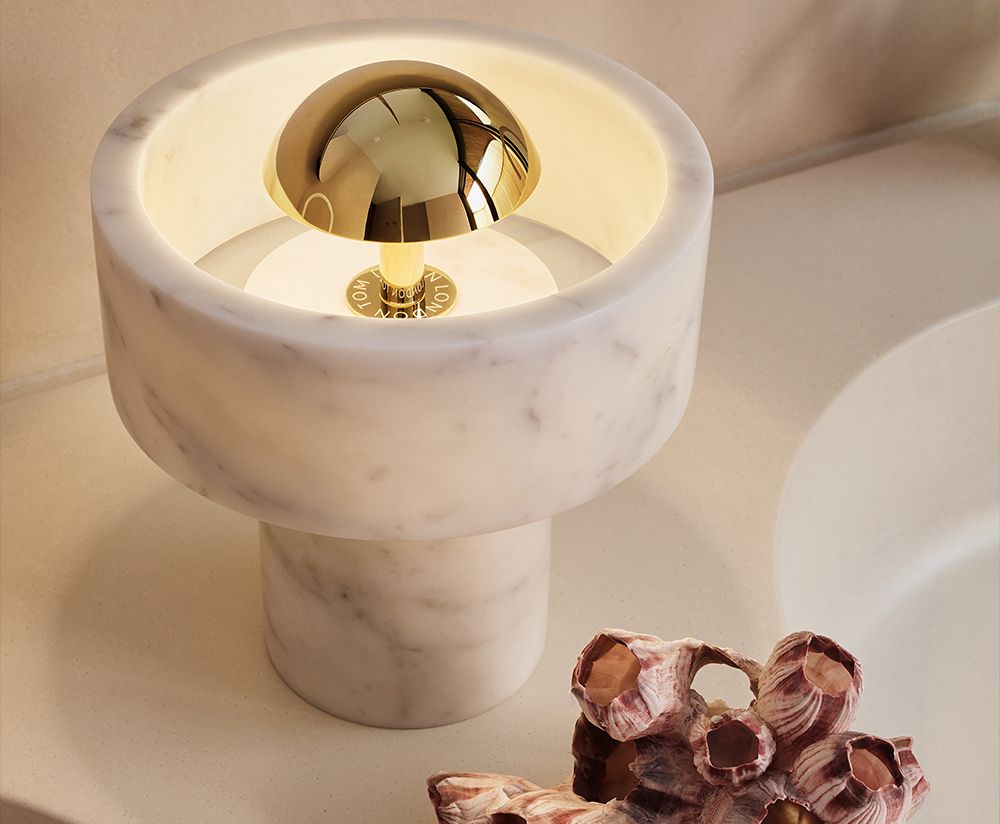 インドの名所「タージ・マハル」の建設に使われた大理石の素材感から着想しデザインされたSTONE(ストーン)。 この素材は、大理石が持つ独特の気品と風合いと経年劣化しない特徴を持ち、他のインテリア製品にも多用されています。 外側の大理石のリングが光源の周りを輪のように浮いて見えるデザインは、太陽の周りに現れる、虹のような光の輪のような視覚効果を産み出します。 調光は光源部分のゴールド・カップ部分がタッチ式のスイッチになっています。 フル充電で約6時間ご使用頂けます。