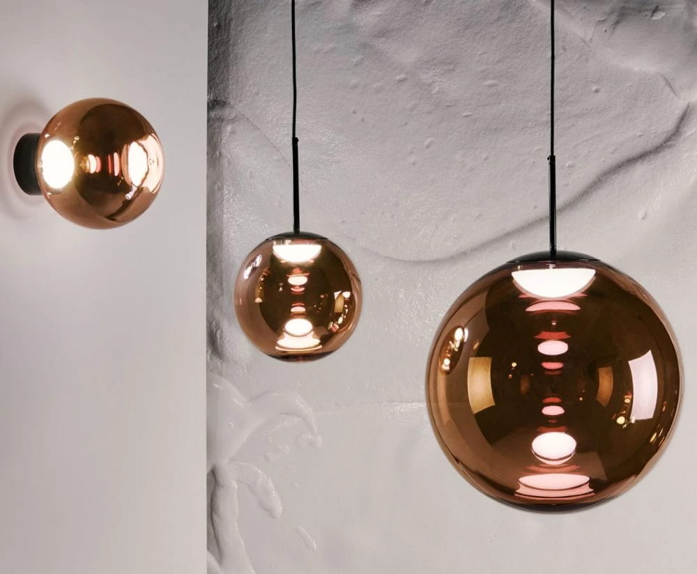 トム・ディクソンは球体にこだわり続けてきました。最も純粋な形を求め続けるトム・ディクソンにとって、GLOBEは極めてミニマルな存在として際立っています。日中の表面は、鏡のように外景を反射する球体となりますが、点灯すると内蔵LEDがいくつも重なって見えるように内部を照らし出します。