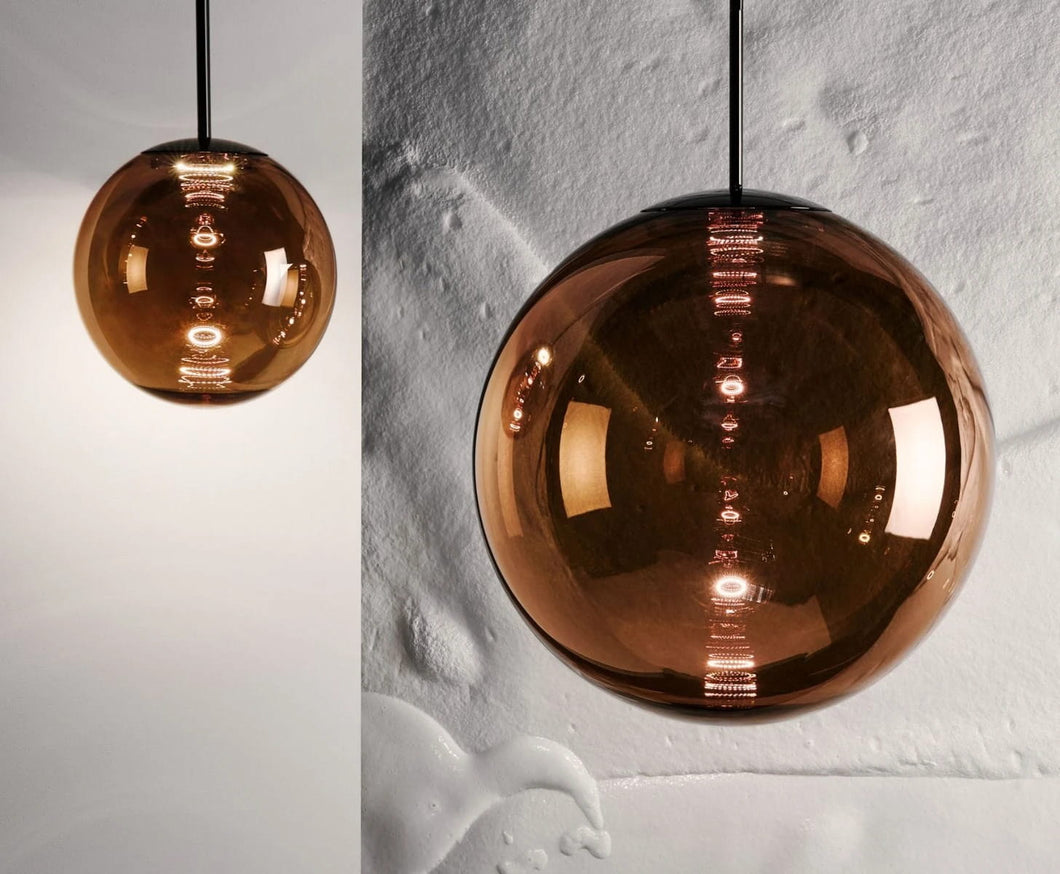 トム・ディクソンは球体にこだわり続けてきました。最も純粋な形を求め続けるトム・ディクソンにとって、GLOBEは極めてミニマルな存在として際立っています。日中の表面は、鏡のように外景を反射する球体となりますが、点灯すると内蔵LEDがいくつも重なって見えるように内部を照らし出します。