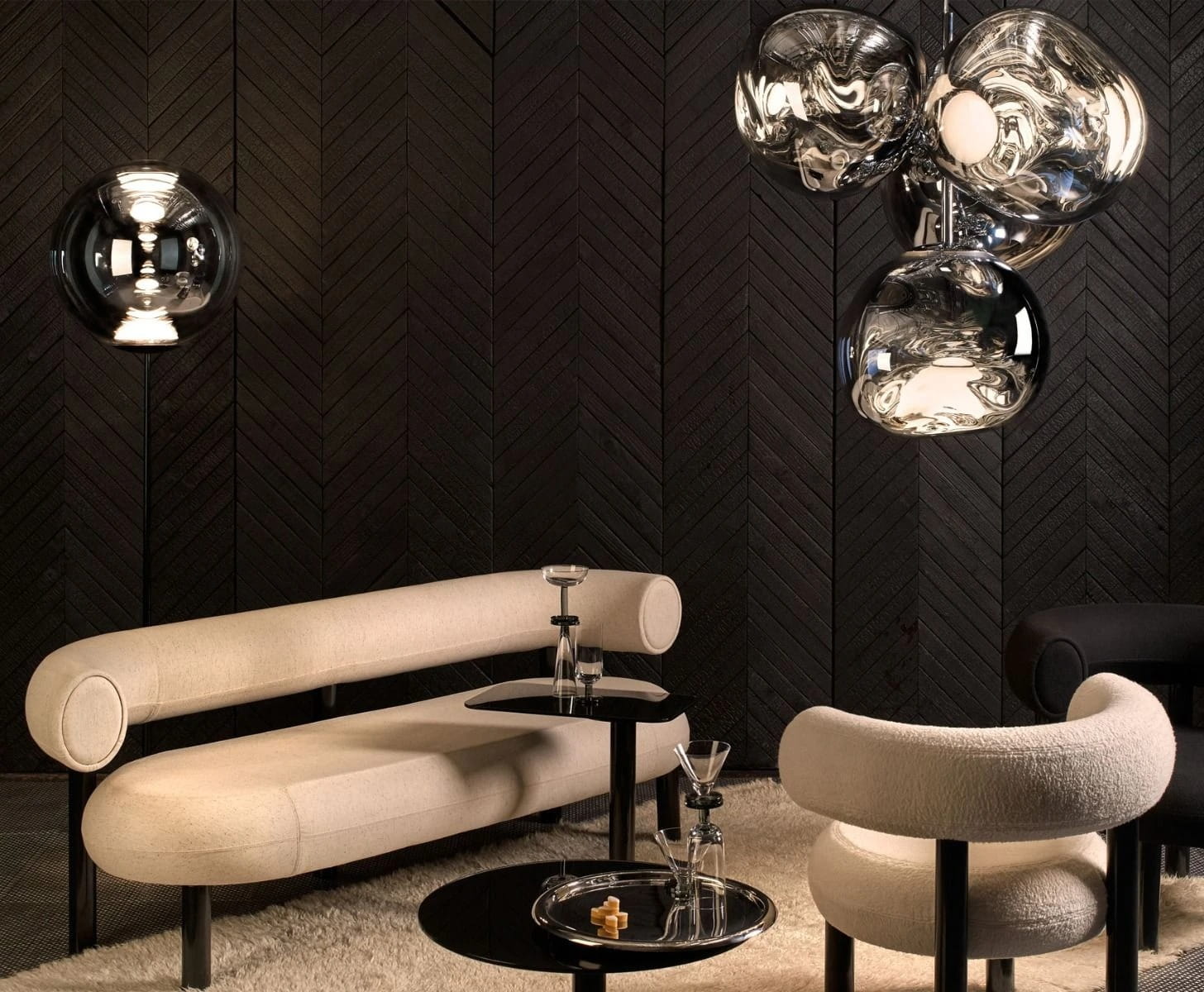 MELTシリーズに新たに加わったMELT CHANDELIER(メルト・シャンデリア)。MELTのシェードが1本の灯具に組み合わされた、新たな表情を見せるシャンデリアとなっています。