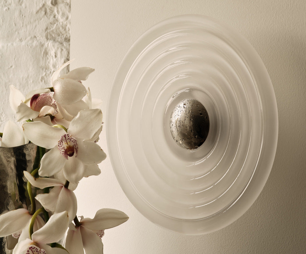 光はガラス全体にやわらかく広がり、空間にあたたかく穏やかな輝きをもたらします。